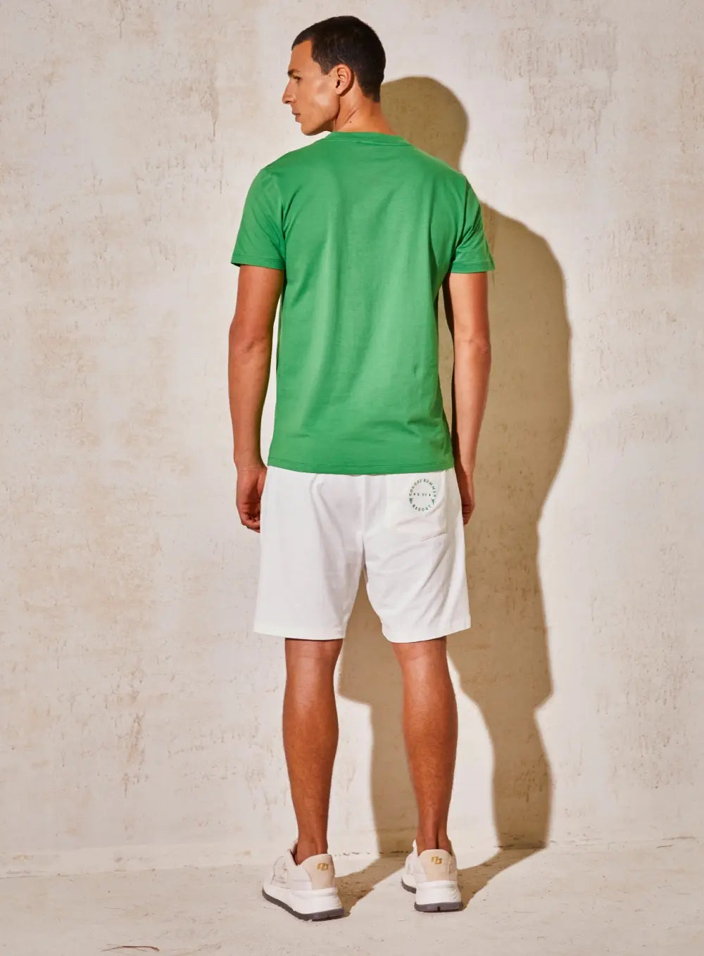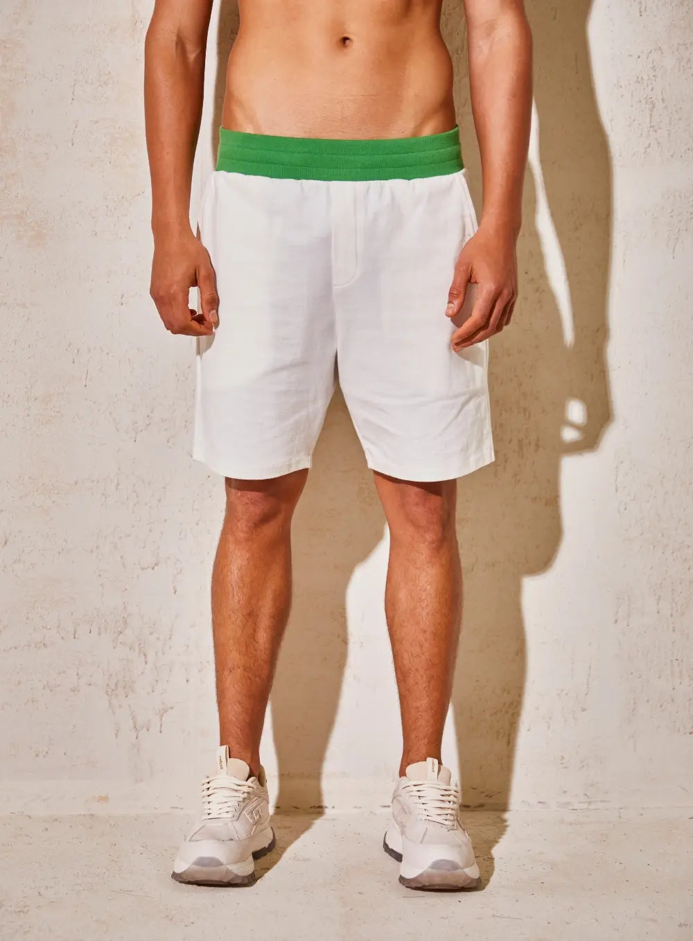 Bermuda: Comprimento acima do joelho, cós com elástico e cordão para ajuste, detalhe em verde na parte interna do cós.Tecido: Algodão macio e confortável.