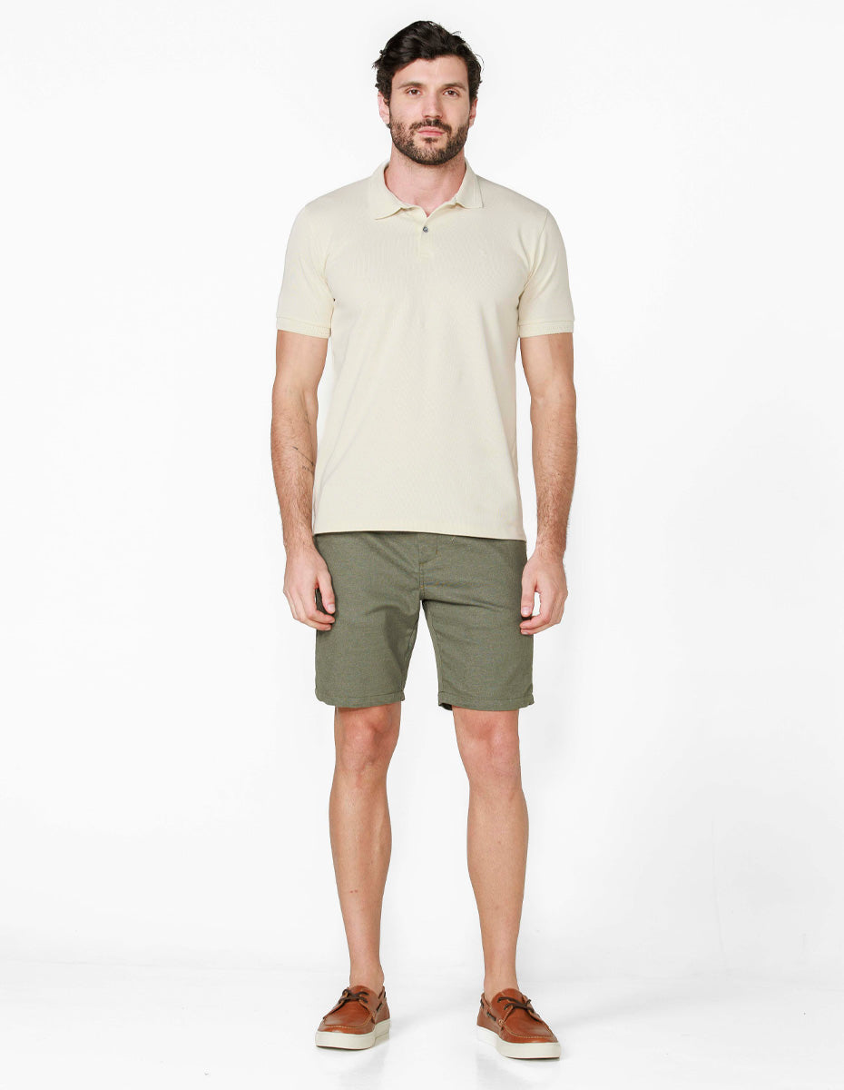 Polo em crepe, tecido encorpado e diferenciado, Gera elegância e sofisticação ao look.