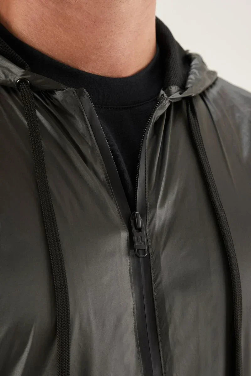 Essa jaqueta possui capuz com cadarço ajustável, proporcionando maior proteção contra as intempéries. Seu zíper frontal permite um fechamento rápido e seguro, enquanto os bolsos laterais oferecem espaço para armazenar pequenos itens essenciais. O acabamento de elástico na bainha e nos punhos garante um ajuste confortável e evita a entrada de vento. Combine com calças de sarja ou jeans..